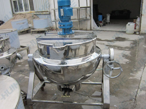 燃氣夾層鍋結(jié)構(gòu)主要由鍋體和可傾架組成;攪拌有刮邊刮底攪拌和普通攪拌。