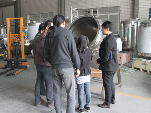 2015年4月21日下午,馬來(lái)西亞客戶需要采購(gòu)?qiáng)A層鍋、高壓蒸煮鍋殺菌鍋設(shè)備,來(lái)我公司與業(yè)務(wù)員和技術(shù)工程師進(jìn)行具體細(xì)節(jié)的洽談,并到工廠參觀成品設(shè)備與現(xiàn)場(chǎng)制作流程。