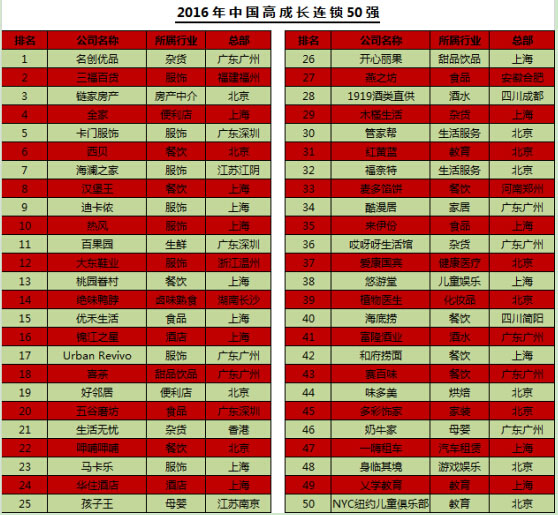 Entrepreneur’s Franchise 500? 1978年在美國由Entrepreneur首次舉辦,至今已舉辦39屆,是全球連鎖行業(yè)投資參考權(quán)威。2008年創(chuàng)業(yè)邦將Entrepreneur’s Franchise 500? 獨(dú)家引入中國,至今已成功舉辦8屆,旨在發(fā)現(xiàn)大中華地區(qū)更具良好成長潛力的特許加盟連鎖企業(yè)。2015年11月,創(chuàng)業(yè)邦投資開店推出新版網(wǎng)站——開店邦。開店邦延續(xù)創(chuàng)業(yè)邦投資開店的優(yōu)良基因,致力于“讓天下沒有難開的門店”,通過平臺完善的生態(tài)鏈和綜合性服務(wù)能力,助力中國優(yōu)秀連鎖企業(yè)的高成長,打造更多消費(fèi)域的明星企業(yè)和行業(yè)標(biāo)桿。