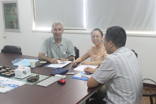 迪拜客戶需要定制數(shù)臺攪拌罐,來我公司參觀并與銷售人員進(jìn)行具體細(xì)節(jié)的洽談。