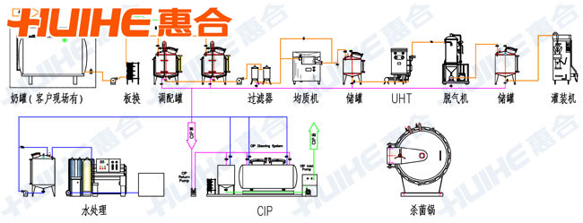 牛奶生產(chǎn)線是由發(fā)酵罐、夾層鍋、超高溫瞬時(shí)滅菌機(jī)、殺菌鍋、儲(chǔ)罐以及其它不銹鋼罐和管道等單機(jī)設(shè)備組成。
